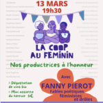 Vendredi 13 mars, à 19h30, Soirée au Féminin, en présence de Fanny Pierot .