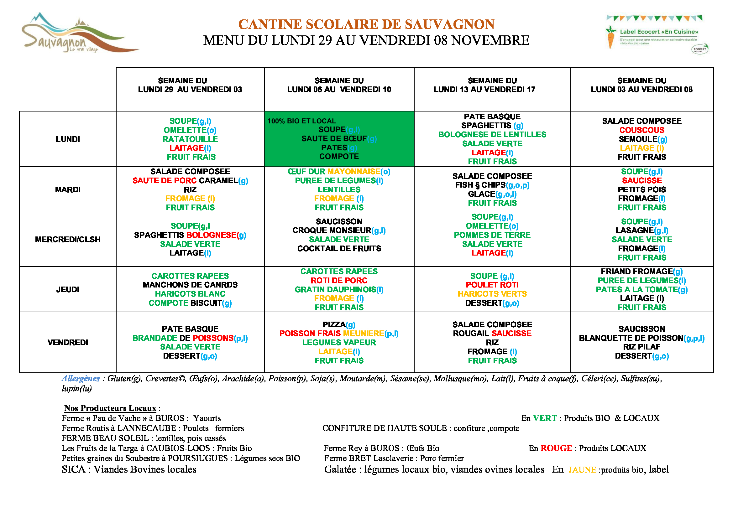 Restauration scolaire Ecole et Jeunesse Scolarité Restauration scolaire Transports scolaires Centre de loisirs Menu du 01 au 26 septembre 2025 :