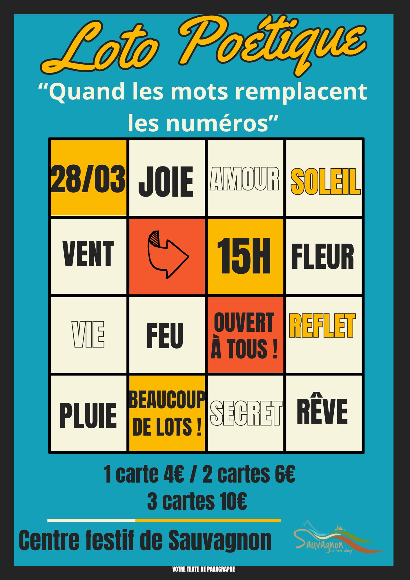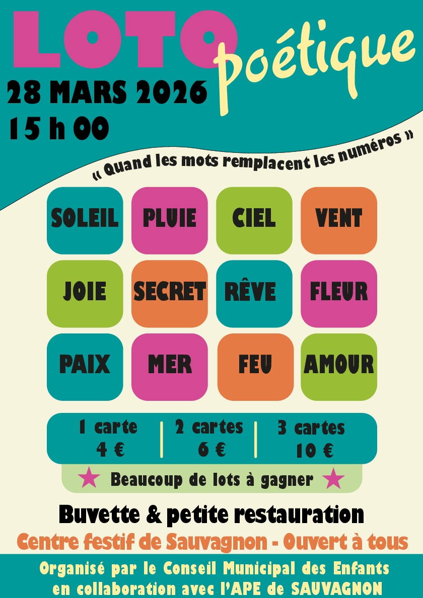 Le Conseil Municipal des enfants organise son loto le samedi 28 mars au Centre festif. Ouverture des portes à 15h.